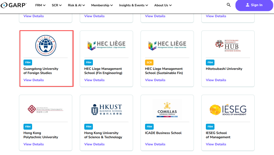 “GARP欢迎广东外语外贸大学金融专业硕士项目加入GARP学术合作伙伴计划。该项目由广东外语外贸大学金融学院开设,为学生提供系统的现代金融与风险管理知识体系,培养其决策思维与国际化视野。完成本项目的学生将在知识层面为应对FRM认证考试的挑战做好充分准备,并具备在全球风险管理领域开展职业生涯的坚实基础。”