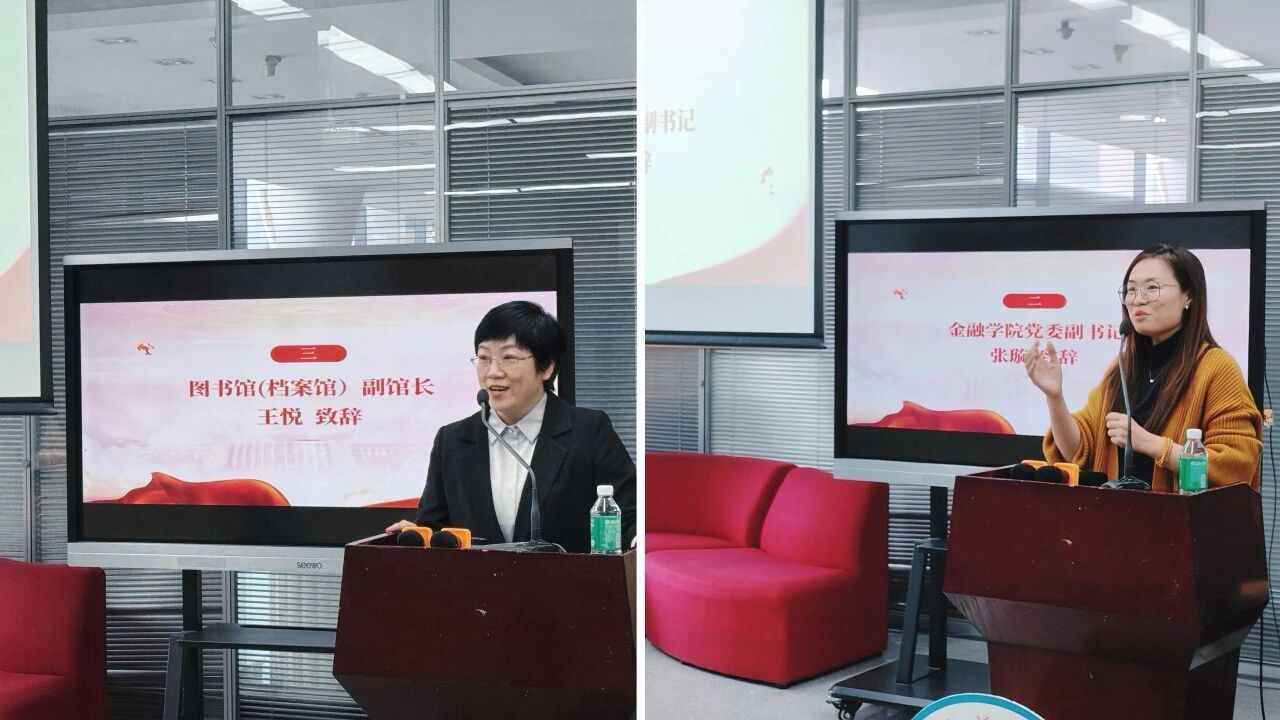 会后,“书香金融”读书系列活动闭幕仪式暨金融党建志愿者颁奖典礼在图书馆南馆举行,图书馆(档案馆)副馆长王悦、金融学院党委副书记张璇出席颁奖典礼,馆、院师生代表共同参与本次活动。张璇表示,“书香金融”读书系列活动既是文化育人的重要载体,更是向校庆献礼的特色举措。她寄语同学们将阅读所得转化为实践能力,彰显青年担当。王悦充分肯定了金融党建志愿者在图书馆工作中的优异表现,她寄语同学们永葆阅读习惯,持续从书籍中汲取力量,努力成长为专业能力与人文素养兼备的新时代金融人才。