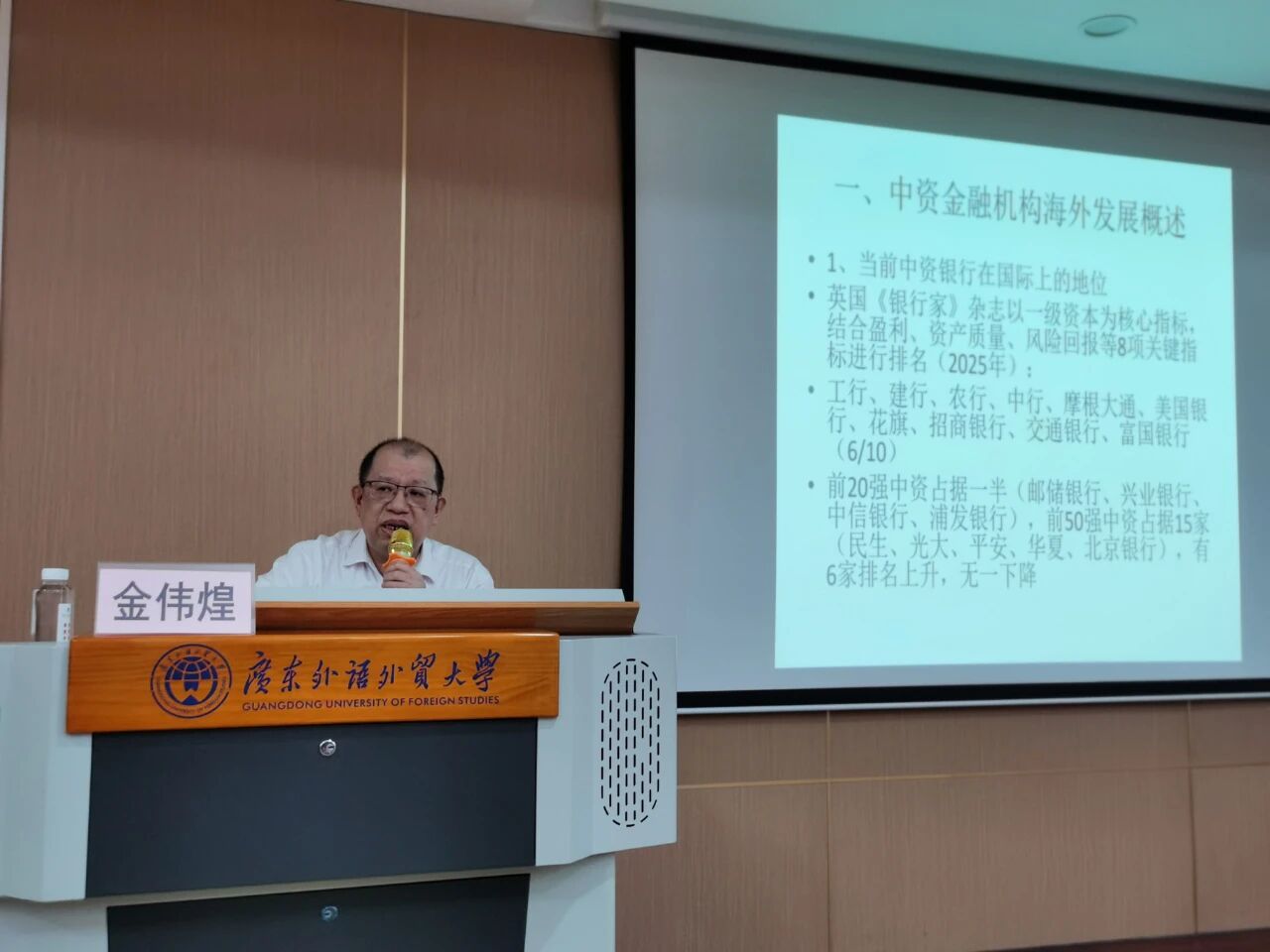 报告中,金伟煌先生结合自身长期海外工作经历,系统梳理了中资金融机构全球化发展的历程与现状。他通过大量国际排名、系统重要性评估及并购案例,深入分析了中资银行在国际金融格局中的地位演变与布局策略,并分享了多位中国籍高管在国际金融组织中的任职情况,展现了中资金融力量的崛起的同时,以实际案例鼓励学子,在未来就业规划中,积极发挥我校对外交流的专业背景优势。在谈及海外工作体会时,他强调,金融从业者既要具备民族自信与专业精神,也要重视跨文化沟通与合规经营,以勤劳、真诚、开放的态度广结善缘。