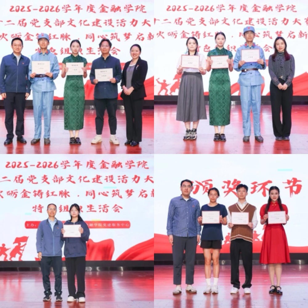 本次活动不仅是各党支部展示组织活力与创造力的舞台,更是金融学院党委推动党建工作与专业教育深度融合、强化青年党员思想政治引领的生动实践。通过“红色演绎”串联起从革命岁月到新时代的金融发展脉络,学子们不仅在舞台上重现历史,更在共鸣中筑牢信仰之基、把握专业之魂,生动展现了新时代金融学子传承红色基因、肩负时代使命的昂扬风貌,以及基层党建凝聚人心、引领发展的蓬勃生机。