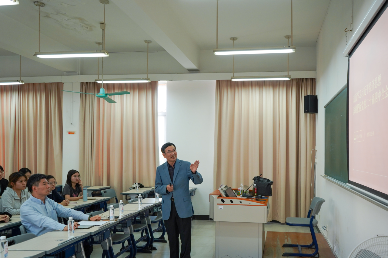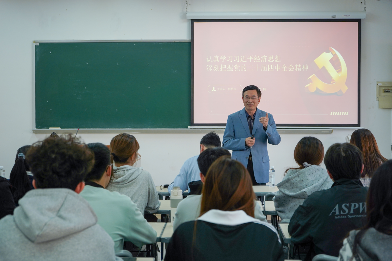 12月18日下午,学校党委常委、副校长何传添教授莅临我院,以“认真学习习近平经济思想,深刻把握党的二十届四中全会精神”为主题,为我院学子带来了一场兼具理论深度与现实温度的专题思政课。学院党委书记徐昶斌、党委副书记张璇、副院长杨菁菁及辅导员刘洁等参加了本次讲座。