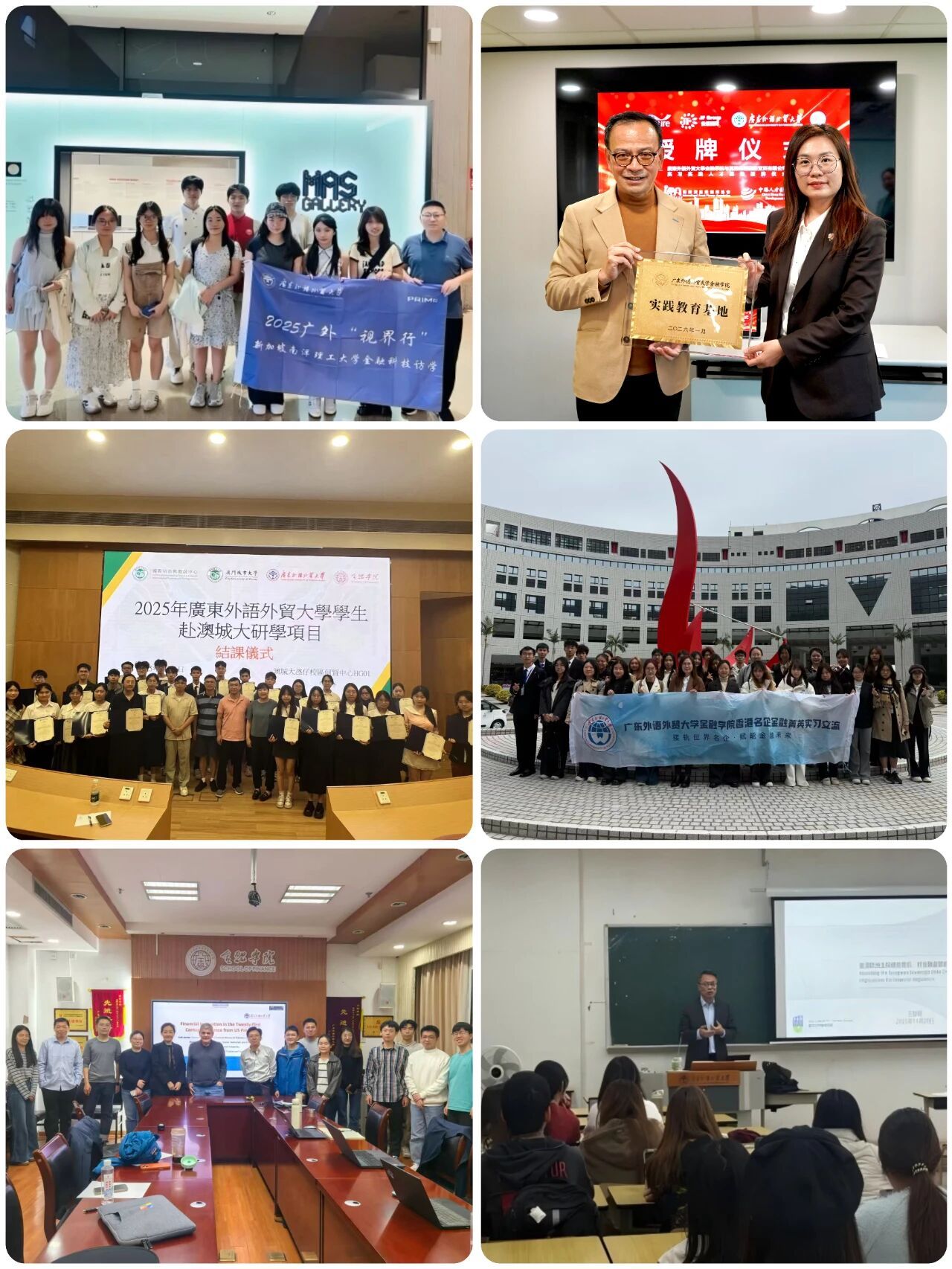 学院积极提升人才培养的国际化水平,国际合作拓展成效显著,新增与香港大学合作项目,稳步推进与澳大利亚昆士兰大学的本硕连读项目;组织学生赴新加坡南洋理工大学参加短期访学,与香港保诚共建的海外教学实践基地首次投入运行并顺利开展了名企实习交流活动,并以全额资助方式、成建制组织2024级金融与科技创新班本科生赴澳门城市大学参加联合培养项目。国际学术资源引入成效显著,全年举办11场高质量的“海外名师讲座”,邀请来自爱尔兰都柏林大学、美国波士顿学院等多所世界一流大学的知名学者来院交流,显著拓宽了师生的国际学术前沿视野。师资与国际化学术影响力同步提升,外教师资吴周恒晋升教授、博导,吴柏毅副教授指导学生荣获多项省级以上竞赛奖励,如第六届“大湾区杯”粤港澳金融数学建模竞赛创新金奖(第一名)。此外,协助学校成功举办了“2025亚洲校长论坛”,进一步提升了学院的国际能见度与影响力。