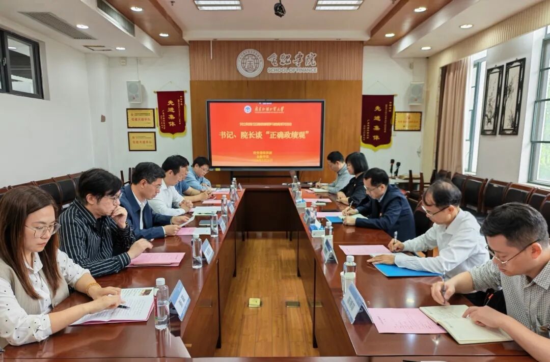 徐昶斌结合学校最新战略部署,围绕“深刻领会正确政绩观核心要义、把牢金融学院发展‘定盘星’”“紧密联系金融学院实际、校准干事创业的‘坐标系’”“以正确政绩观引领新征程、激发高质量发展的‘动力源’”三个方面展开阐述,指出要进一步校准我们的发展观、事业观、政绩观,凝聚起干事创业的强大合力,将其转化为服务党和人民事业发展的自觉行动,转化为推动金融学院、金融学科内涵式、高质量发展、助力学校开创“十五五”新篇章的强大动力。