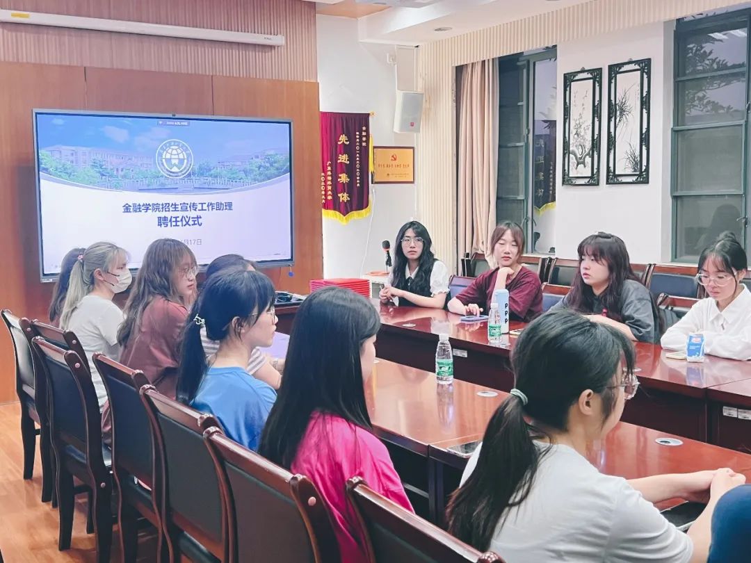 4月17日晚19:00,金融学院在院系办公楼401会议室举行招生宣传工作助理聘任仪式暨业务培训会。学院党委徐昶斌书记,学院汕头籍教师吴凯茜及15位汕头籍22级本科生出席会议。