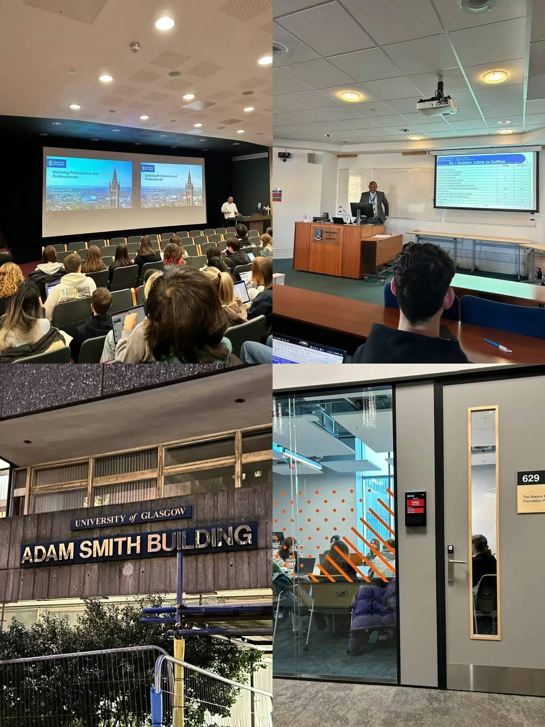 以经济学之父亚当斯密冠名的格拉斯哥大学亚当斯密商学院是欧洲顶级商学院之一,三百年前亚当斯密在这里学习、教书,在这里的学习充满了乐趣与挑战。我选修金融会计、金融与社会研究等课程,全英语的学习环境、教授怪怪的口音无疑是必须跨过的坎,因为会计一直是我的弱项,所以在这里学习会计无疑给了我很大的压力,各种财务报表各种会计原则…像“一只无形的手”把我狠狠压在图书馆的座位上。