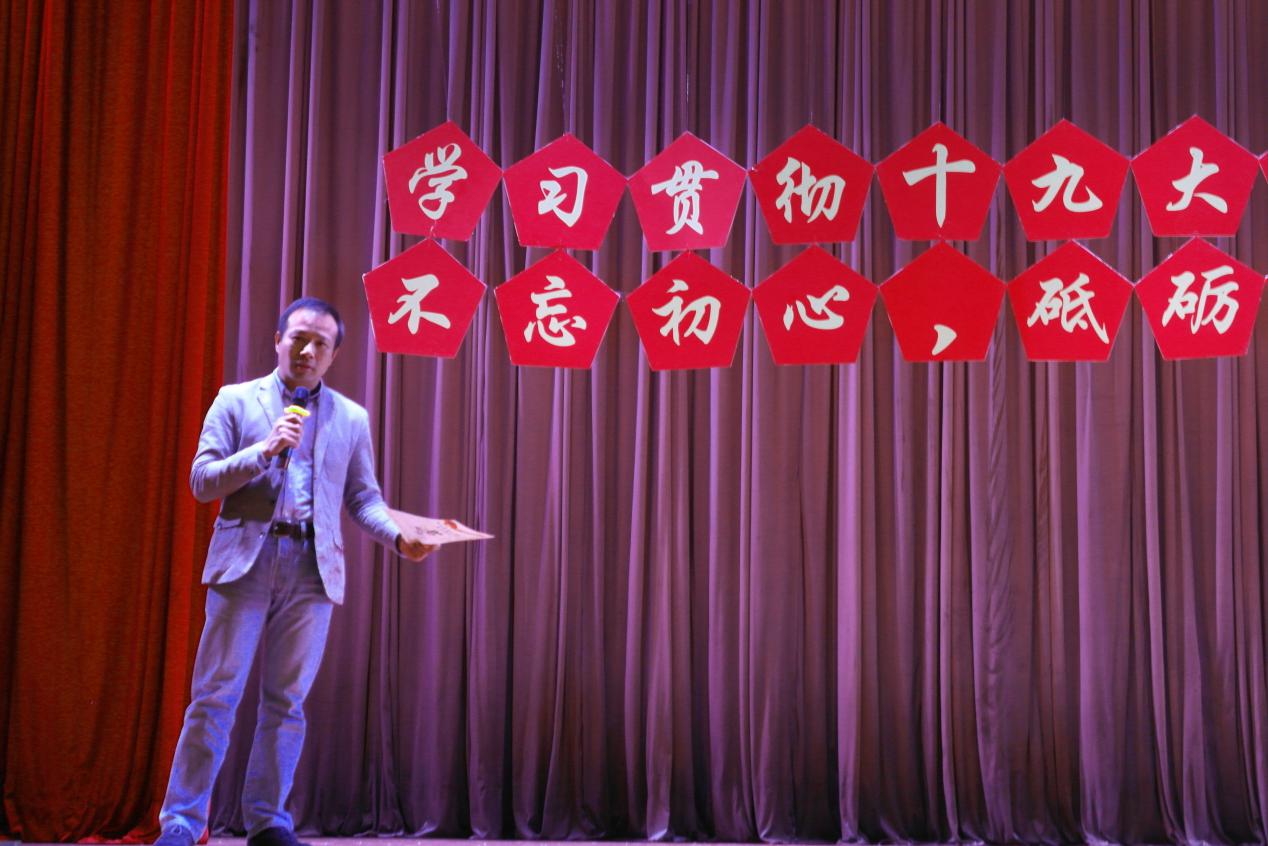 紧接着,赵观音书记对各参赛队伍的表演做出点评。他表示今晚每支队伍的节目总体上都很精彩,表演形式多样,契合“不忘初心,砥砺奋进”的主题,且感情真挚,感染力强。同时,他也补充了在表演过程中出现的不足,例如细节把握程度不够、有些演绎不够积极向上、个别用词不当等。赵老师还指出,作为金融学子,如果能结合党的十九大提出的金融体制改革和自身专业特色来进行演绎,更能体现我们对党和国家建设的思考,展现金融学子的风采。