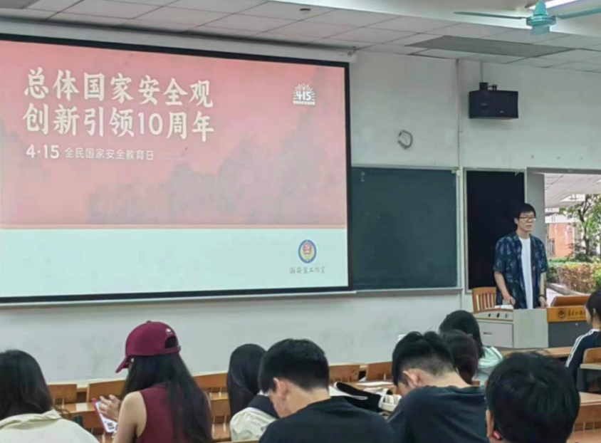 4月24日,金融学院2022级开展了主题为“总体国家安全观,创新引领十周年”的全民国家安全教育日宣传教育活动。会议由金融学院2022级预备党员魏芷璇、陈奕彤负责宣讲,22级学生陈浩强主持,我院近100名学生参加了会议。